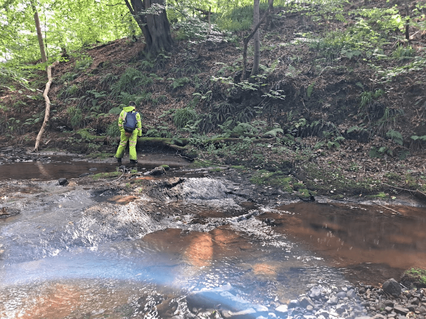 Image: The EP Ecology team examine a riverbank for signs of otter