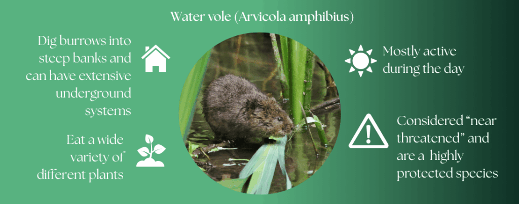Water voles are considered “near threatened” in Scotland and endangered in England and Wales, and have full protected species status. They’ve experienced significant habitat loss and been heavily predated by the American mink, a non-native species. You may have had previous ecological surveys requesting further water vole surveys or live in an area with river courses that might have potential habitat for water voles, therefore your local planning authority may have asked for a water vole survey.